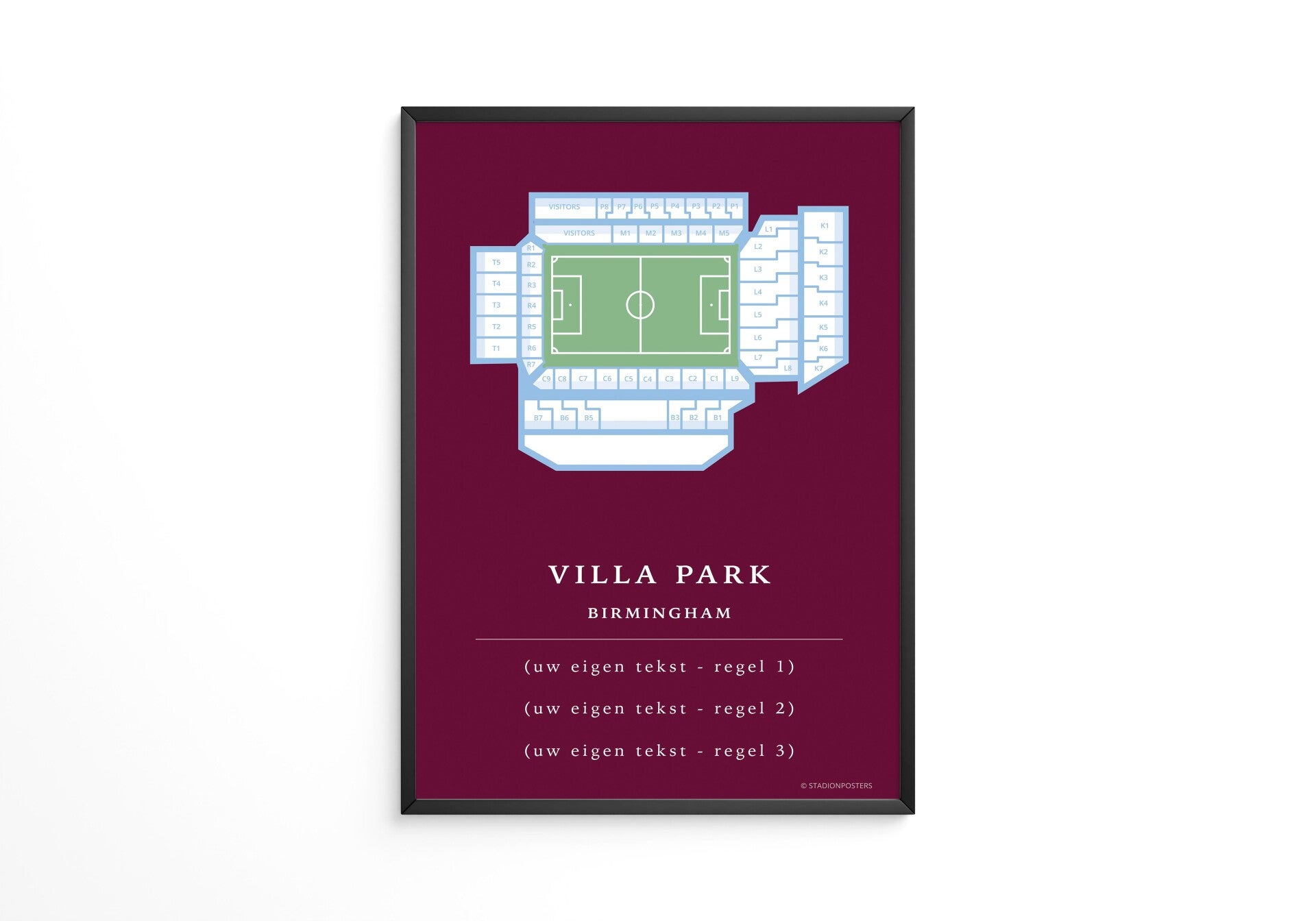 Vul jouw eigen tekst in en lijst dit bijzondere aandenken in, in een luxe lijst, zoals deze passe partout! Haal jouw herinnering van die ene wedstrijd in huis met onze Eigen Stadion Posters.