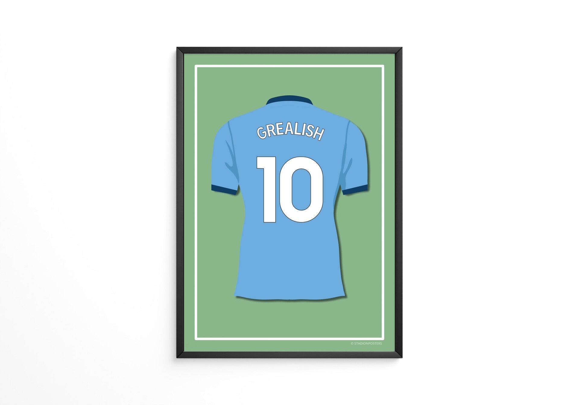 Een poster van het shirt van Jack Grealish van Manchester City voor jouw zoon of vriend voor op de kamer? Hang jouw club held/ favoriete voetballer op aan de muur!