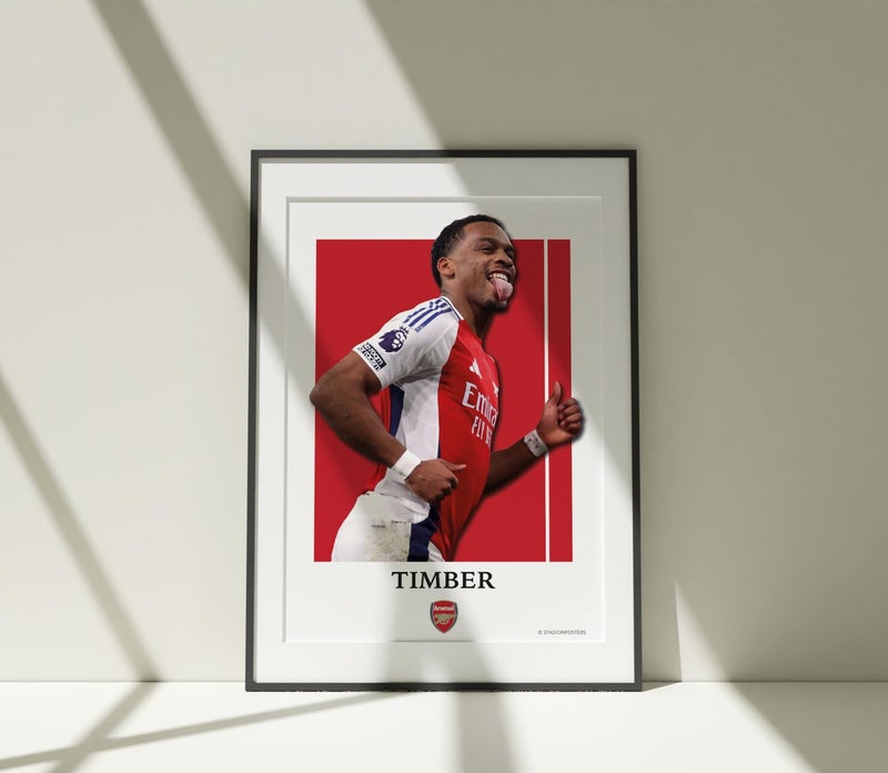Een poster van Jurrien Timber! Een mooie poster voor een echte fan van Arsenal.