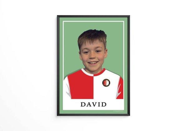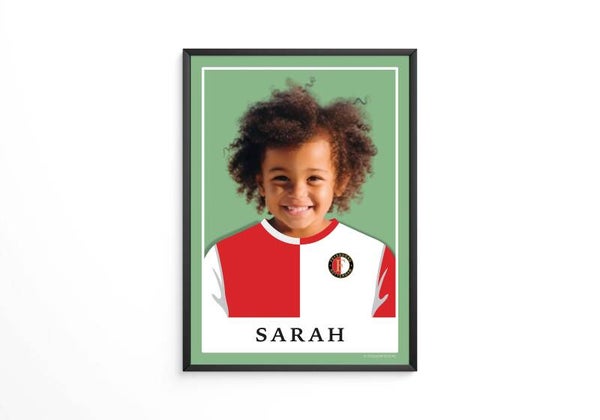 Maak een eigen Feyenoord poster voor je zoon of dochter van het shirt van Feyenoord met eigen naam.! Vul de naam in en creëer een unieke, gepersonaliseerde poster van de favoriete voetbalclub van je zoon of dochter – perfect voor aan de muur van hun slaapkamer!