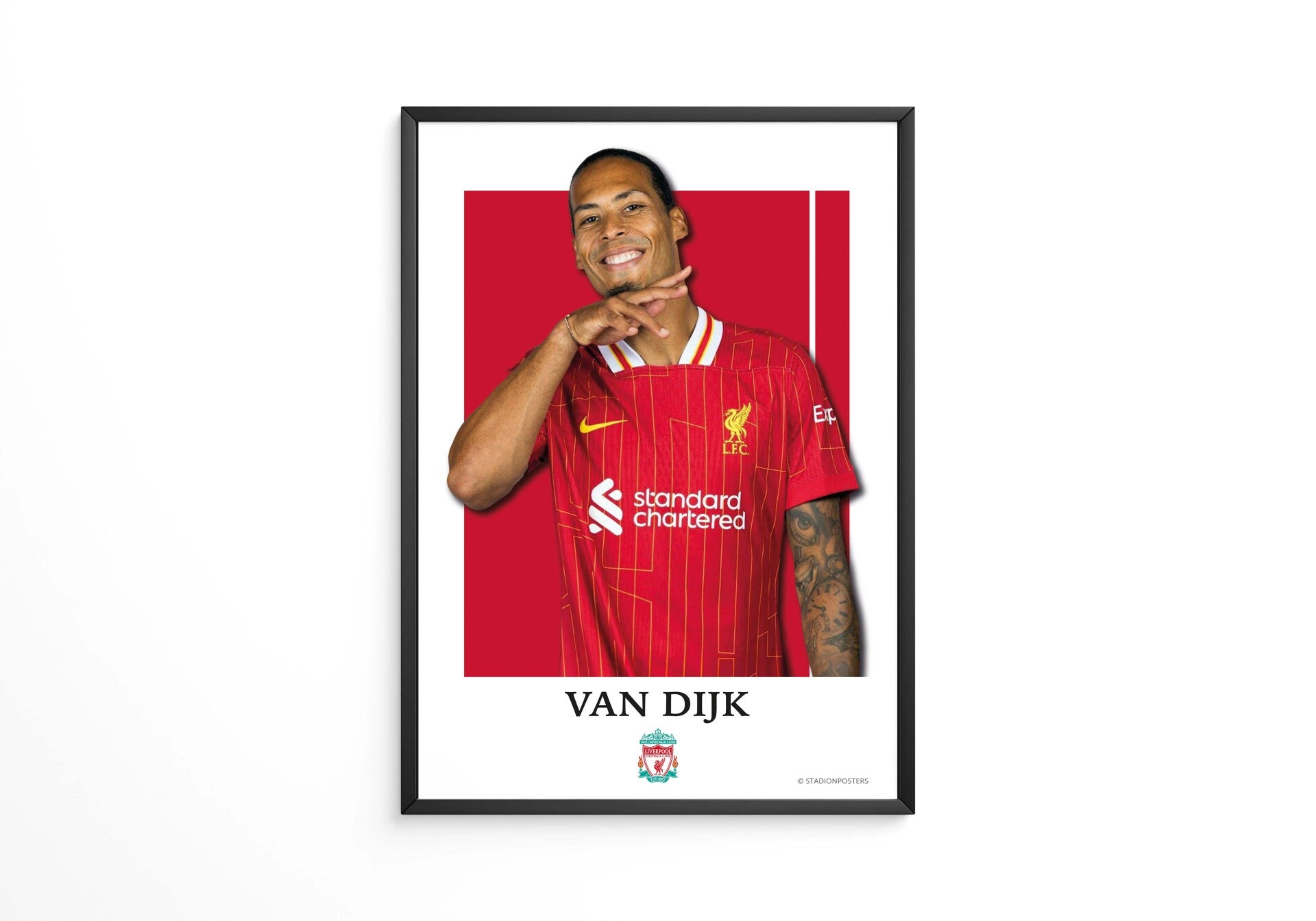 Een poster van Virgil van Dijk! Een mooie poster voor een echte fan van Liverpool — of voor je zoon of dochter die droomt om later net zo goed te worden als hun favoriete speler. Perfect voor in de slaapkamer, speelkamer of boven het bureau als dagelijkse dosis voetbalmotivatie.